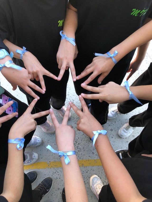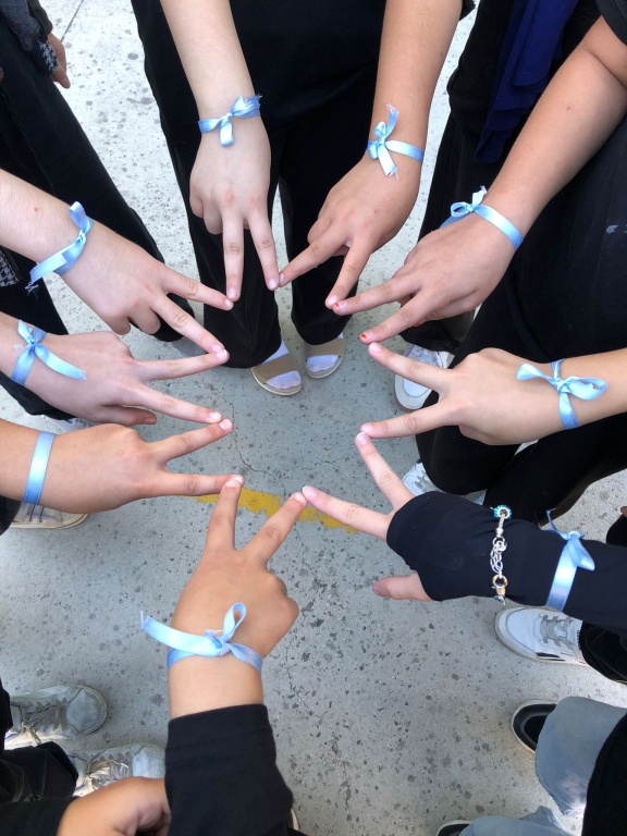 Mudanya İmam Hatip Ortaokulu öğrencileri “Gazze’ye sahip çıkıyorum” sloganıyla mavi bilekliklerini taktı.